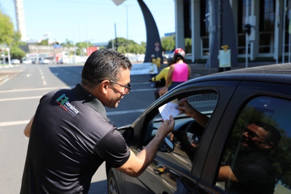 Blitz da ALERR divulga campanha Agosto Dourado, com entrega de panfletos e balões.