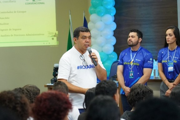 O presidente da ALERR, Soldado Sampaio, acompanha a participação da Assembleia e destaca a importância de orientar os jovens sobre carreiras e empreendedorismo.