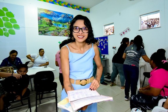 Durante a ação, as famílias passam por triagem e, em seguida, são encaminhadas para a pesagem e atualização do cartão de vacinação. Beneficiária do programa há um ano, Suelen Prata, 33, moradora do bairro Pintolândia, aproveitou a oportunidade para atualizar o cartão de vacinação da filha, Diedra Prata, de 15 anos.