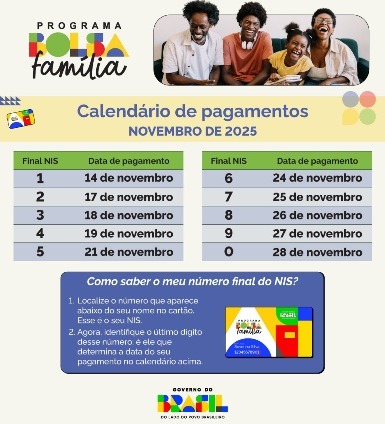 Um total de 74.709 famílias em todos os 15 municípios de Roraima estão contempladas em novembro com o Bolsa Família. Para isso, o investimento do Governo do Brasil no estado supera R$ 55,7 milhões. O valor garante um benefício médio de R$ 748,18. O cronograma de pagamentos tem início nesta sexta, 14 de novembro, e segue até o dia 28, de acordo com o final do Número de Identificação Social – NIS (confira abaixo).