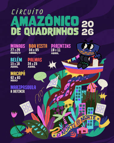 A jornada começa este mês em Manaus (AM), entre os dias 27 e 29 de março, com a Semana do Quadrinho Nacional de Manaus. O itinerário segue por Boa Vista (RR) com a Feira Roraimense de Quadrinhos, Parintins (AM) com a Feira Parintins Encantada, Belém (PA) com a Semana do Quadrinho Nacional do Pará, Palmas (TO) com a Feira Teiú de Quadrinhos, Macapá (AP) com a Semana do Quadrinho Nacional do Amapá e Maripasoula, na Guiana Francesa, trazendo a pan-Amazônia para o circuito, integrando diferentes territórios e fortalecendo a cena de quadrinhos amazônicos.