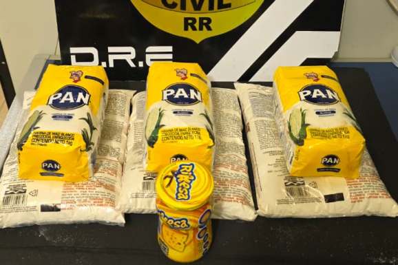 Ainda no mesmo dia, outra equipe da DRE interceptou, em uma agência dos Correios de Boa Vista, um carregamento de drogas ocultas em alimentos. Foram apreendidos três pacotes de farinha de trigo e três de farinha de milho da marca “PAN”, com embalagens violadas e lacradas de forma irregular com fita adesiva. Testes reagentes confirmaram que o material continha cocaína misturada aos produtos alimentícios. Todo o entorpecente foi encaminhado à perícia para quantificação, e as investigações seguem em andamento para identificar os responsáveis pela remessa.