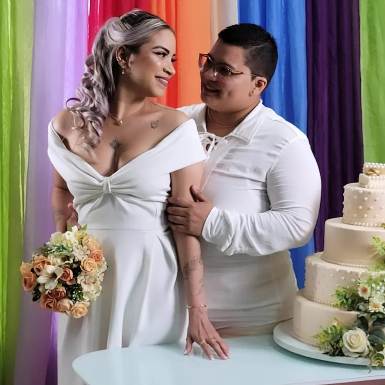 A edição ‘Toda Forma de Amor’, voltada à comunidade LGBTQIAPN+, ampliou o alcance do projeto. A supervisora de atendimento, Amanda Araújo, e a técnica em enfermagem, Raiel Homara, juntas há cinco anos, decidiram participar depois de conhecerem a iniciativa.
