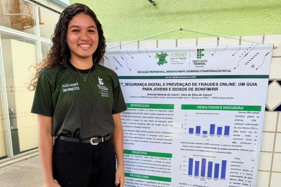 Segundo ela, os resultados apontam avanços importantes após as ações do projeto: todos os participantes passaram a identificar golpes de phishing, o uso de senhas fortes aumentou para 83% e a verificação da segurança de sites alcançou 87%. O trabalho também foi apresentado no 13.º Fórum de Integração Ensino, Pesquisa e Extensão (Forint 2025), o maior evento técnico e científico do IFRR.