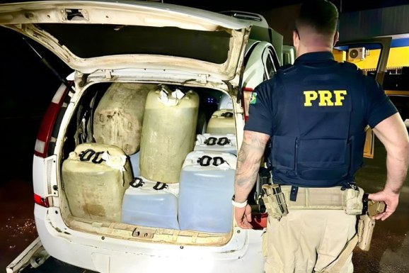 No interior do veículo foram encontrados 20 carotes com mil litros de combustível de aviação.