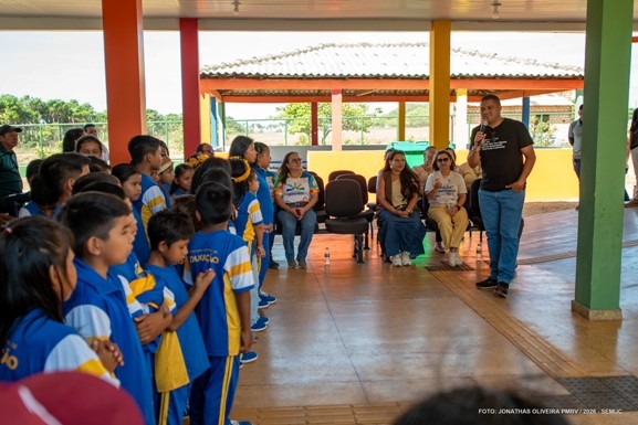 A recepção na comunidade indígena Darora foi marcada pela dança do Parixara, expressão cultural do povo Macuxi. Em seguida, os visitantes acompanharam apresentações dos alunos, que compartilharam músicas, atividades pedagógicas e experiências de aprendizagem que integram tradição e inovação.