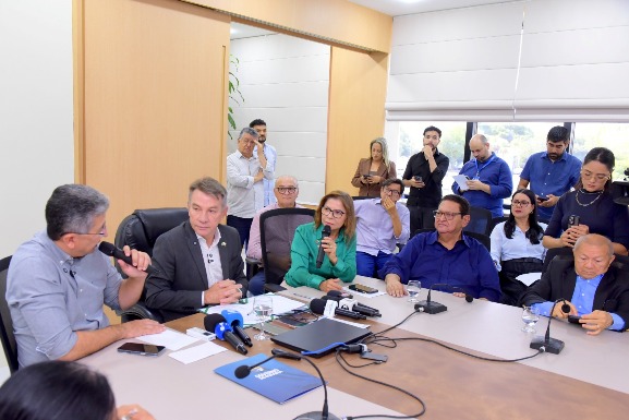 A sanção ocorreu durante coletiva de imprensa no Palácio Senador Hélio Campos, com a presença do vice-governador Edilson Damião, dos deputados estaduais Aurelina Medeiros e Lucas Souza, além de representantes do setor produtivo e da Fier (Federação das Indústrias do Estado de Roraima).