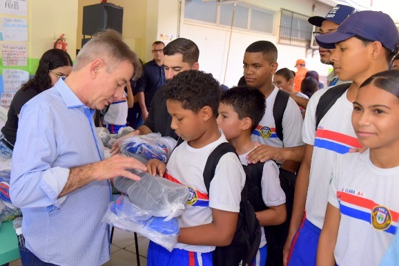 A ação integra o compromisso do Governo em garantir igualdade de acesso, conforto e valorização dos mais de 80 mil estudantes da rede estadual de ensino, que estão recebendo o kit completo de fardamento escolar, composto por calça, bermuda, camisetas e par de tênis.