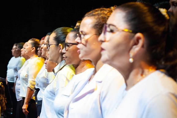 “O canto coral é a terapia por excelência, auxiliando na redução dos níveis de estresse, além de fortalecer a relação entre as pessoas. E, claro, aprende-se um ofício novo, onde você treina seu ouvido rítmico e musical e também passa a cuidar mais da voz”, explicou a regente do coro, maestrina Alexandra Macedo.