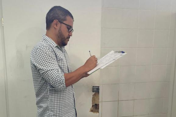 Na visita, o vereador também viu que os banheiros da escola estavam em condições insalubres, com portas quebradas, vasos quebrados, cabines quebradas, azulejos quebrados, o que poderia ocasionar acidentes no local, além de Centrais de ar que por serem antigas, estavam em mal funcionamento. “É triste ver crianças estudando em um lugar com essas condições. E tem sido recorrente.”, apontou Ítalo.