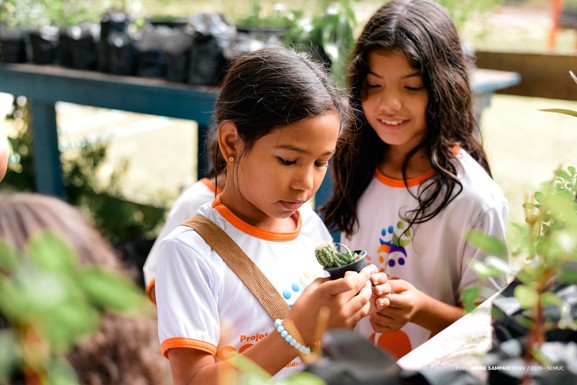“Estou retornando das férias e é minha primeira vez visitando o Dedo Verde. É muito legal conhecer novos lugares, aprender coisas diferentes. Aqui podemos brincar, jogar, conhecer as plantas, que são muito bonitinhas”, contou.