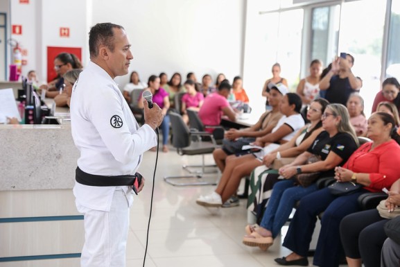 A equipe do Centro Humanitário de Apoio à Mulher (Chame), da Secretaria Especial da Mulher (SEM) da Assembleia Legislativa de Roraima (ALERR), participou, nesta quarta-feira, 11, de uma programação especial no Hospital de Amor, no bairro Pricumã, em Boa Vista. A atividade, que integrou as ações do Mês da Mulher, contou também com palestra sobre violência doméstica e familiar, além de uma aula experimental de defesa pessoal.