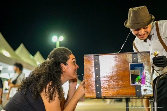 Entre os grupos que integram a programação, estão: JM Jazz, Criart Teatral, Circo ImaginArte, Locômbia Teatro de Andanças e Só Rindo & Cia. Uma das atrações que vem despertando a curiosidade do público é o teatro itinerante lambe-lambe “Espia Aí”, apresentado pelo Criart Teatral. Segundo a diretora Kaline Barroso, os visitantes podem conferir quatro histórias diferentes dentro de caixas, todas voltadas para toda a família.