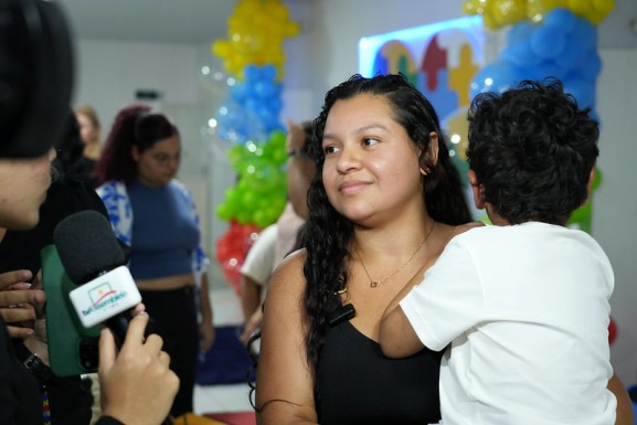Gabrielly Lucena, mãe do pequeno Felipe Lucena, de cinco anos, acompanha de perto cada evolução do filho desde o início dos atendimentos no Teamarr, quando ele tinha apenas dois anos. Diagnosticado com TEA nível 2 de suporte, o menino quase não falava ao ingressar no programa. Hoje, segundo ela, já consegue se comunicar, pedir o que deseja e se expressar através de pequenas frases, avanços que emocionam toda a família.