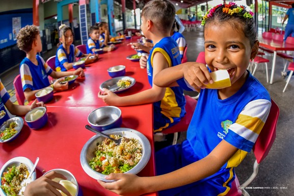 Na Escola Municipal Francisco Pedrosa, uma das unidades entregues recentemente, o feijão tropeiro foi servido no almoço e rapidamente virou assunto entre os pequenos. A novidade agradou.