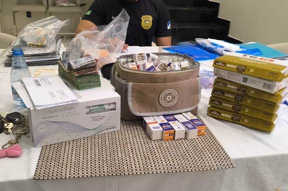 No local foram apreendidas diversas unidades de Tirzepatida, Lipoless e Retatrutide, substâncias utilizadas em tratamentos médicos e frequentemente associadas a processos de emagrecimento.