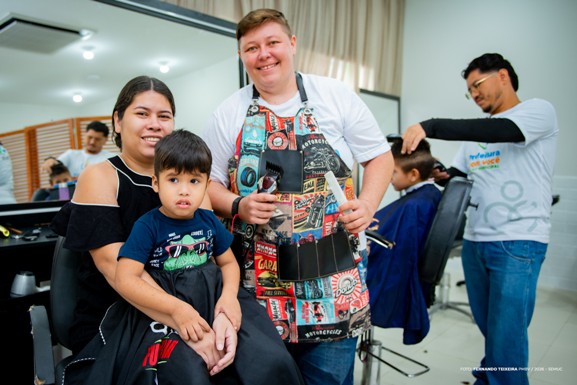 “Ele é aluno aqui na Escola Professor Ronilson, e foi assim que soube da ação. Sempre aproveito quando acontecem essas iniciativas. Quando ele vai cortar o cabelo, vou conversando com ele, peço para ficar quietinho, e ele entende”, relatou.