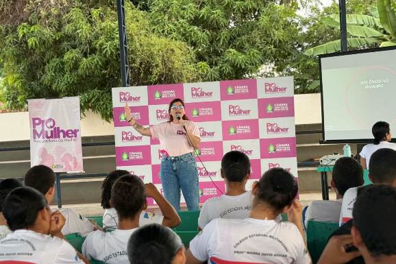 A Procuradoria da Mulher da Câmara Municipal de Boa Vista realizou, nesta terça-feira, 2, uma roda de conversa na Escola Estadual Wanda David Aguiar, abordando um tema essencial para a proteção das jovens: o reconhecimento e a prevenção de relacionamentos abusivos. A ação foi conduzida pela Procuradora da Mulher, Pra. Carla Messias, acompanhada da Psicóloga Maíne Ferreira, que dialogaram com estudantes sobre sinais de alerta, autocuidado e formas de buscar ajuda.