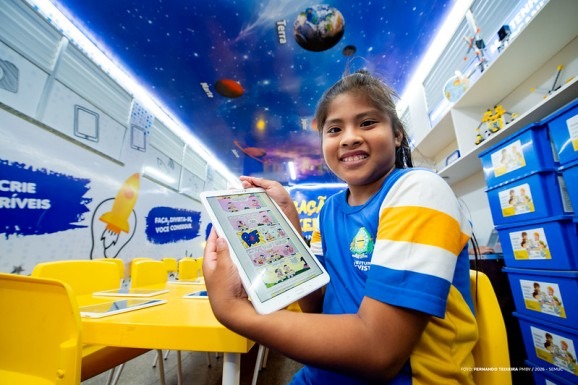 Na prática, a conectividade já impacta diretamente o aprendizado dos alunos. A professora Euseni Pereira desenvolve o projeto “Viajando pelo Mundo Digital dos Gibis”, que utiliza uma plataforma online com histórias da Turma da Mônica para incentivar a leitura.