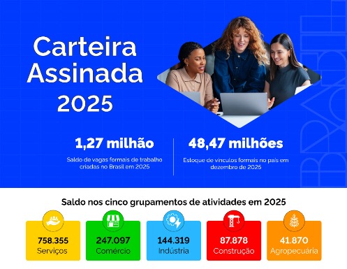 NACIONAL – O Brasil encerrou 2025 com saldo positivo de 1.279.498 empregos com carteira assinada, resultado de 26,59 milhões de admissões e 25,32 milhões de desligamentos registrados entre janeiro e dezembro. O estoque de trabalhadores celetistas cresceu 2,71% ao longo do ano, passando de 47,19 milhões para 48,47 milhões de vínculos ativos.