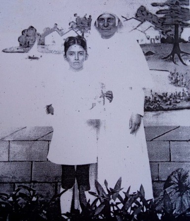 Registro da Primeira Comunhão da roraimense Maria Olímpia Mesquita. Na foto, na companhia da Madre LeótaviaZoller (In Memorian). – Foto: Acervo Pessoal